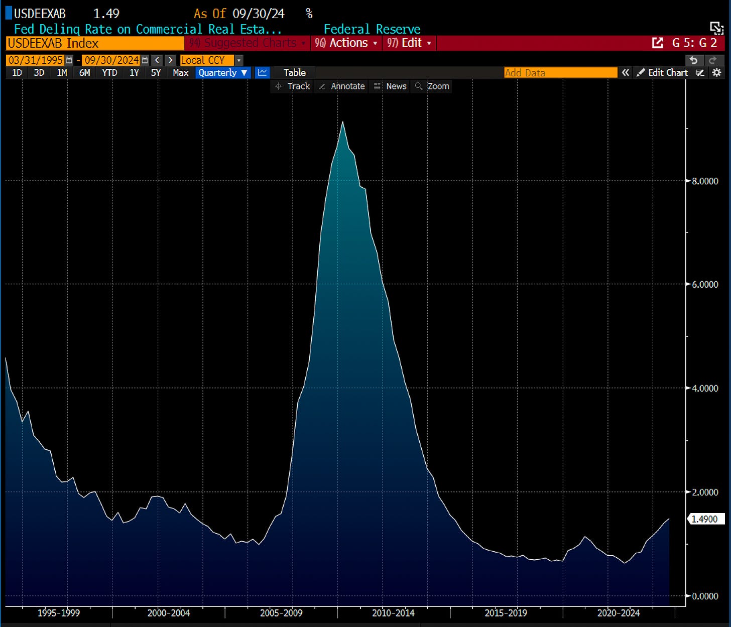 What about CRE? The media paints a dire picture, but the numbers so far have been underwhelming. Bank CRE loan delinquencies remain historically low, even if they're creeping up. Headlines may bark, but the bite has been mild. Many banks loaded up on CRE loans in 2022, with maturities often 5–7 years out—making it more of a 2027 problem, if one at all. Bank loans, as trades like VLY and HMST show, are still pricing at reasonable discounts. A bullish signal? The growing non-bank bid for riskier CRE paper, which could provide crucial support for bank credit going forward.