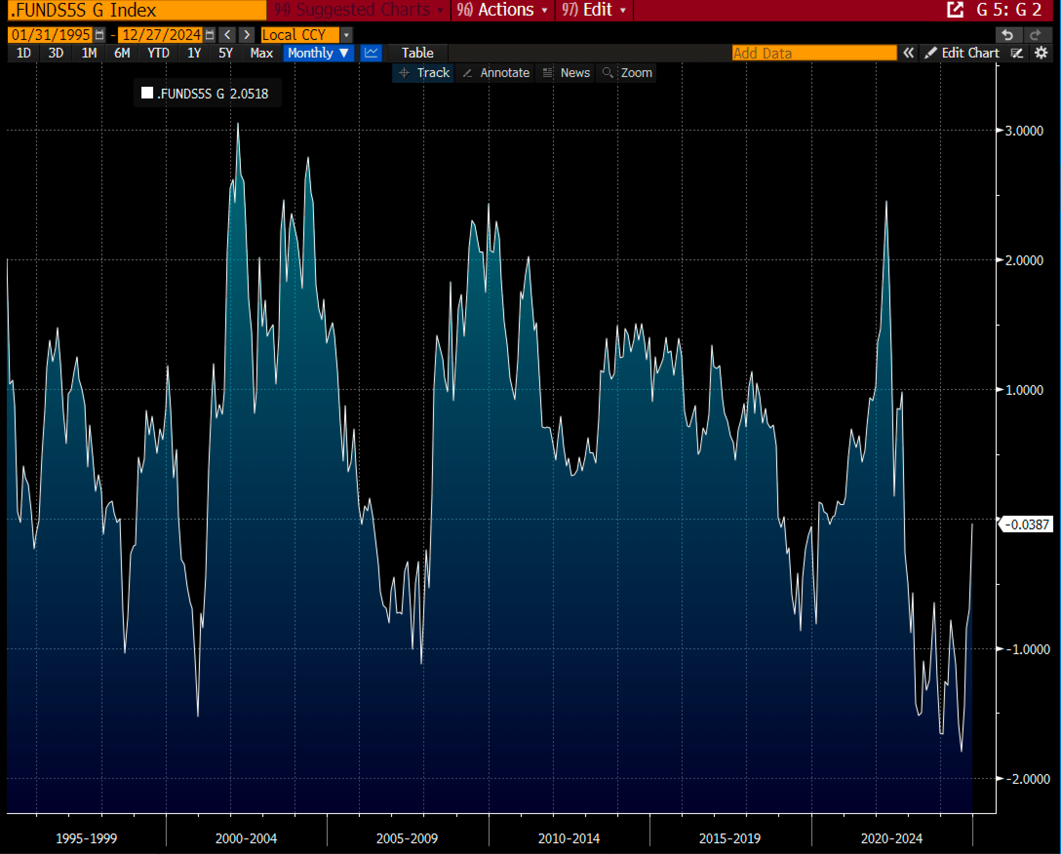 Fast-forward to 2024, and the parallels to the late 1990s are striking. GDP growth, while not as rapid as the ’90s, has exceeded expectations, reflecting economic resilience—and Trump’s pro-growth policies could amplify this further. Bank earnings, which took a hit in 2023, are rebounding, with analysts forecasting mid- to high-teens EPS growth through 2026. Credit and liquidity fears, much like in the ’90s, are dissipating. Meanwhile, the prolonged yield curve inversion is ending, with even modest slope improvements boosting net interest margins (NIMs), creating an environment that rhymes with the mid to late 1990s and early 2000s.