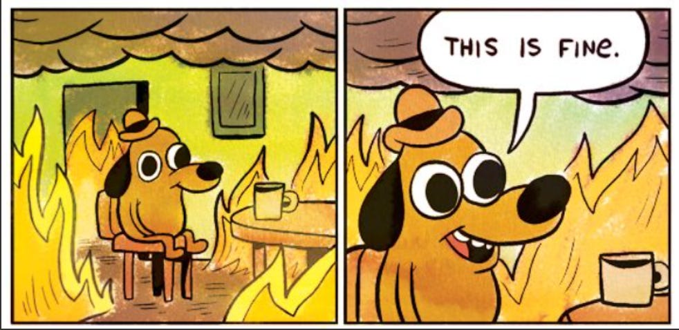 Starting in March of 2023, the banking sector was in full on crisis mode. Headlines were dominated by the high-profile collapses of Silicon Valley Bank (SIVB) and the “Buddhist transformation” of First Republic (FRC) into JPMorgan Chase. Signature got tapped for many unforgivable sins including (and not limited to) not having their discount window lines set up to meet deposit redemption requests during the panic. Across the country depositors fled, pulling money from banks in favor of safer alternatives. USTs? Sure. Money Markets? Yes please. Cash under a mattress? Maybe. And the world of Hedge Funds & Passives abandoned the bank stock ship in droves during this time. People were rushing to call this bank “a zero” and that bank “a donut” with panache and an almost reckless abandon. It was a crazy time, but the theme of 2023 was the “this is fine” meme day after day after day.