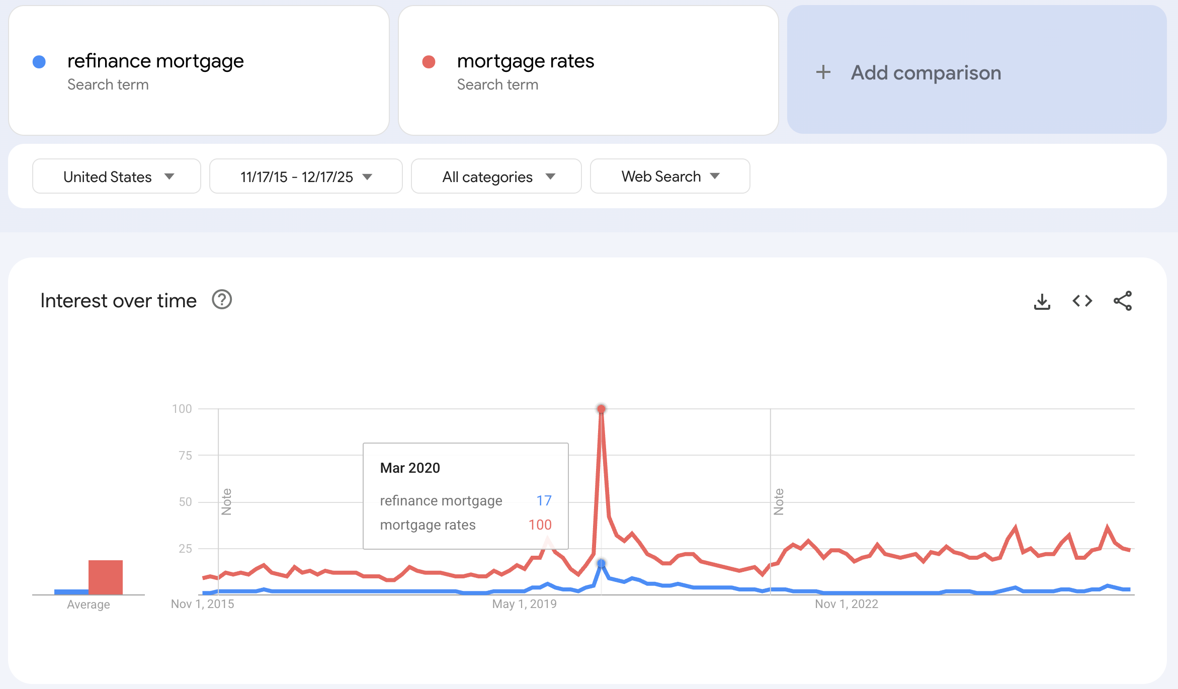 Make no mistake, a “bet” on RKT though is attached at the hip to mortgage rates, refis, home purchases, and the 10 year UST. Those are the macro variables that drive upside & downside. A quick look at historical Google trends shows you that.