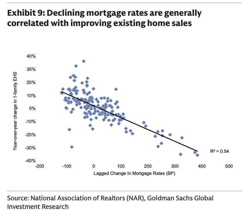 But make no mistake, buying RKT now is still a bet on 10 year UST rates and mortgage rates falling. If you think about rocket in a real rates down, call it 200bps as Goldman outlines it, this means a big chunk of people are now in the money and able to refi (about $1.4 trillion according to GS) and improved affordability layers on another huge swath (about $1.8 trillion according to GS). In this world RKT’s origination’s hit $320 billion and core EPS bumps to $1.70 (their words not mine).