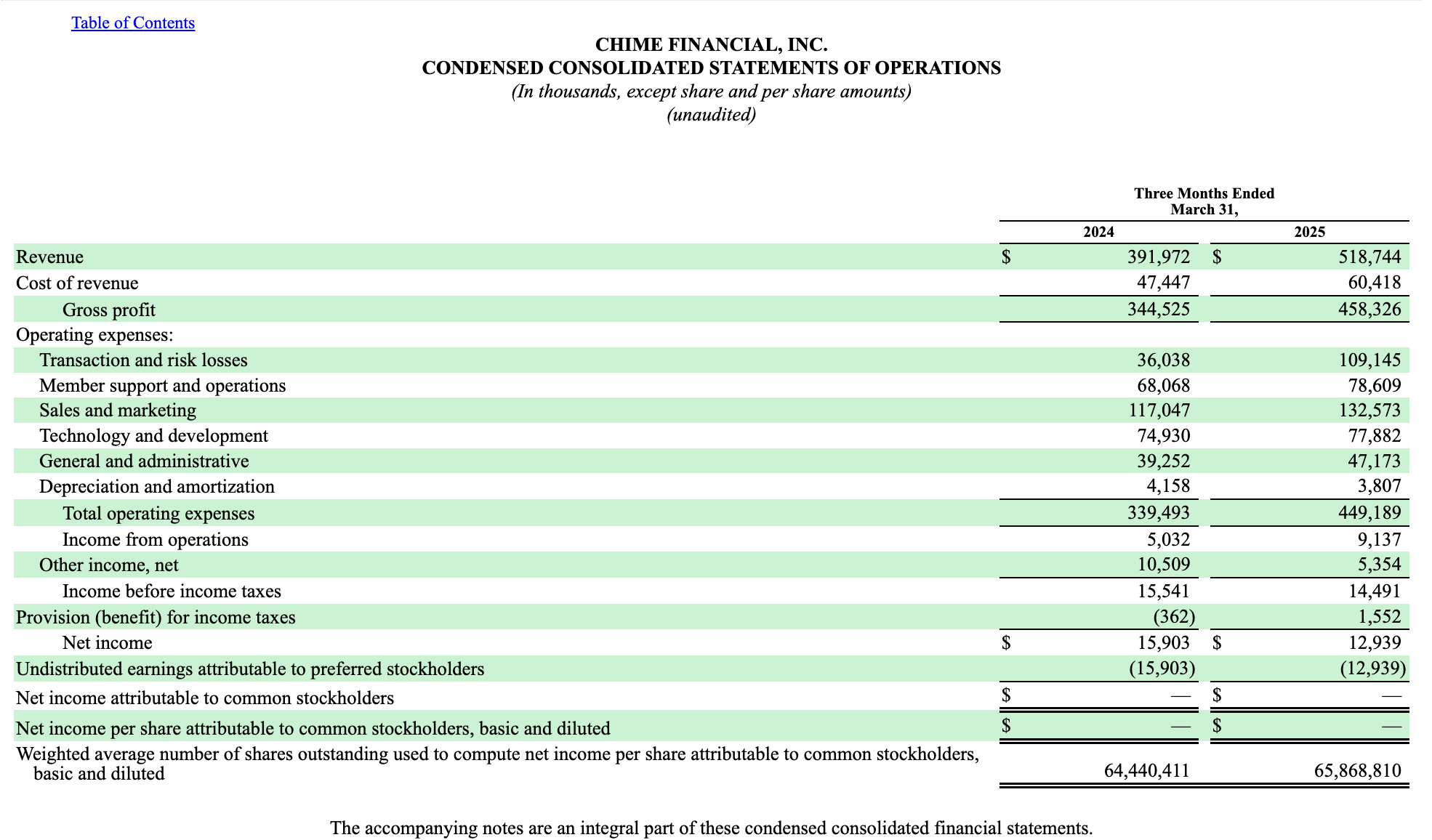 According to the S-1, by the close of 2024, Chime had opened more than 38 million total accounts, facilitated over $135 billion in direct deposits, and processed a staggering $378 billion in total payment volume, all without ever holding a bank charter. That kind of scale, delivered through a front-end interface sitting atop regulated partner banks, is a remarkable feat in brand-led consumer finance, proof of just how hungry the market was for a banking experience that felt less extractive and more intuitive. But underneath that reach sits a cost structure few talk about and fewer understand.
