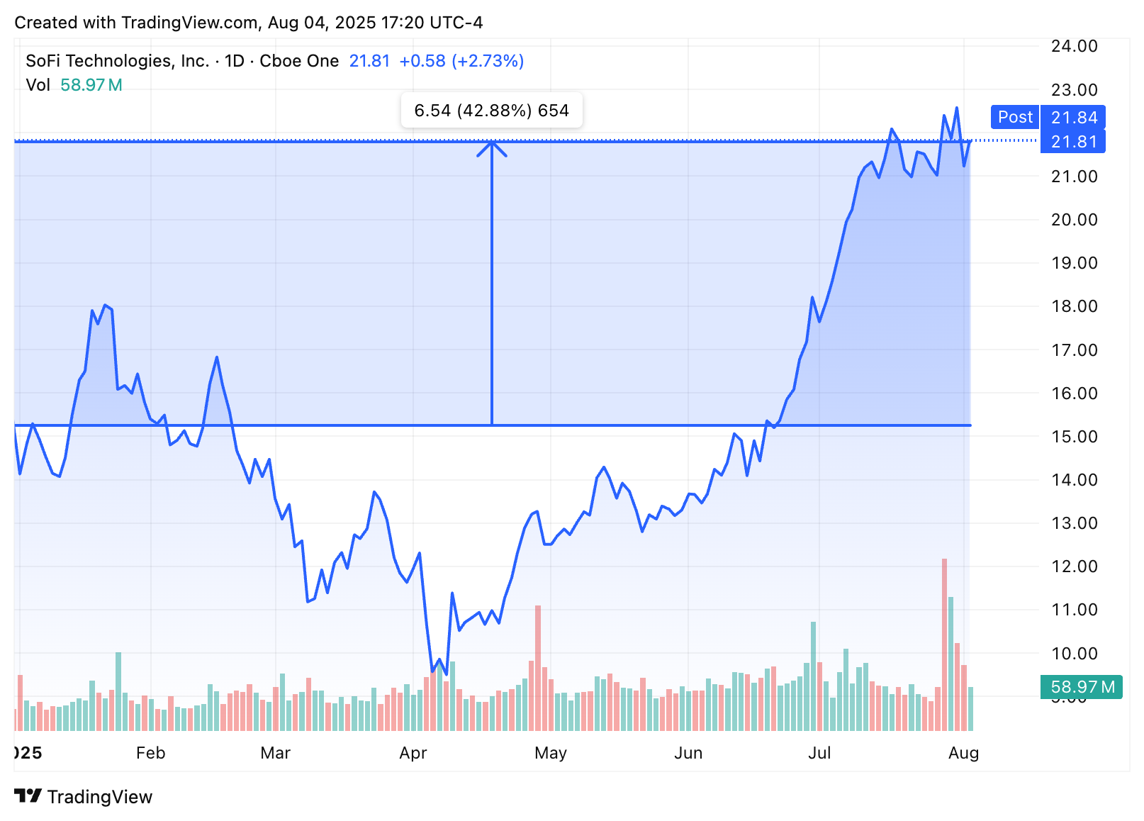 Funnily enough, when I did my work, I wanted to hate on SoFi, but they were a good way within financials to own growth. And growth has worked.