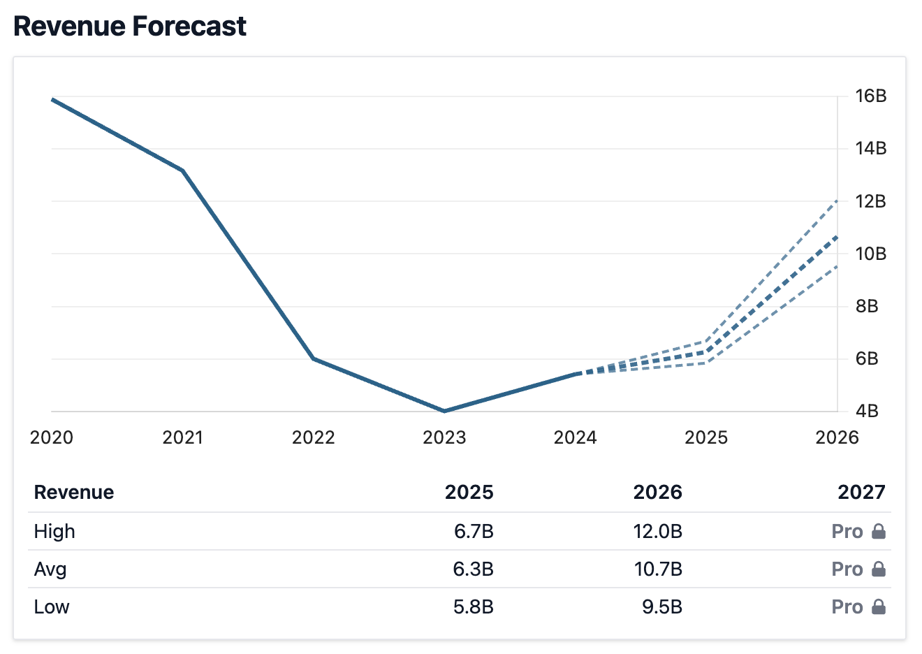 The 2025 run rate is expected to be about $6.3B. Earlier in the year, analyst consensus for 2026 sat closer to $7.7B, but has since moved rapidly toward the $10.6B range. That estimate migration explains the move in the stock. The more important question is what level of mortgage production that revenue actually requires.